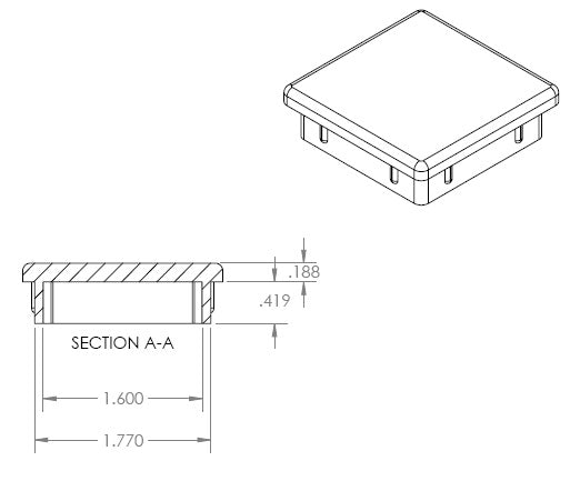 End Cap Fits 2” Square x 11 Gauge Tube. U.S. Made