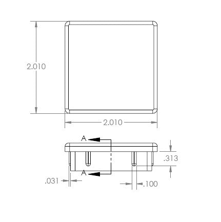 End Cap - Fits 2” Square x 11 Gauge Tube. U.S. Made