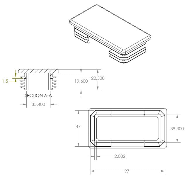 This Multiple Gauge Plug is designed to fit rectangular openings measuring 2” x 4”, providing a secure and protective seal. Constructed from durable, high-quality material, this plug is ideal for industrial, furniture, and DIY applications. It effectively prevents dirt, debris, and moisture from entering, while offering a clean and finished look to the component it covers.
