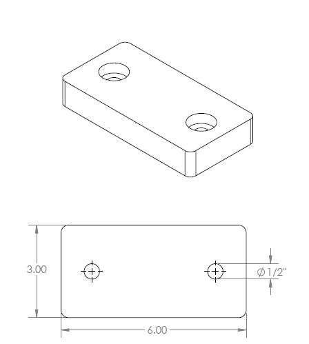 Rubber Floor Pad - 6” x 3” x 1” (New Style with Round Bolt Slot)