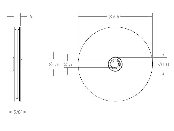 Steel Pulley - 5-1/2” x 1/2” Hub x 1/2” Bushing